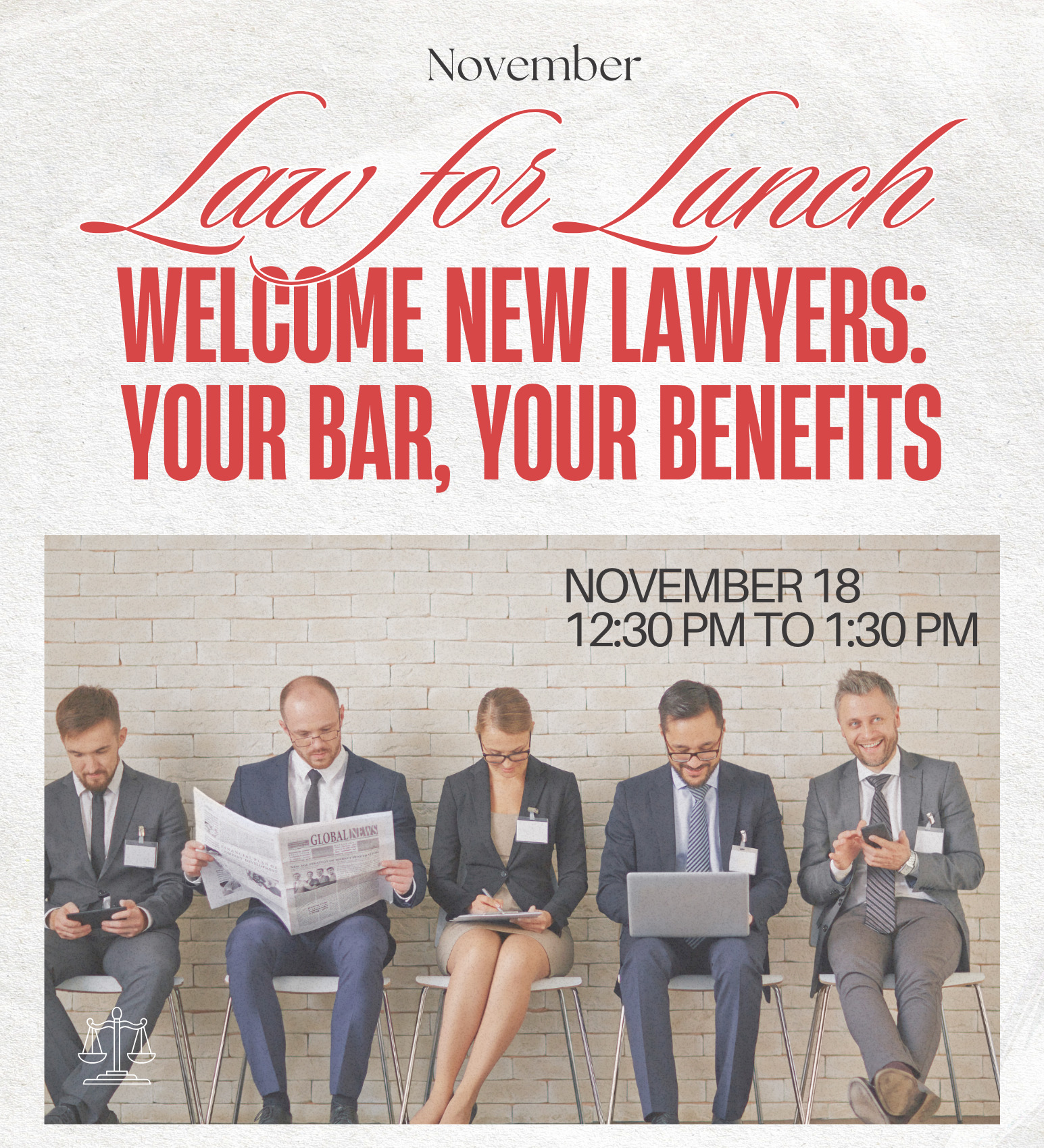 November 2025 Law for Lunch | Welcome New Lawyers: Your Bar, Your Benefits